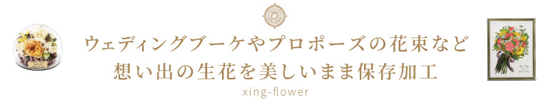 お客様の声挙式で使用するお花を残すことができないかと、 式場の加工含めいくつか検討させていただきました。 その中でも、シンフラワー様の加工ブーケは、形状や値段の幅など選択肢が多く、 希望しているブーケの残し方ができそうだと思い、シ・・・
