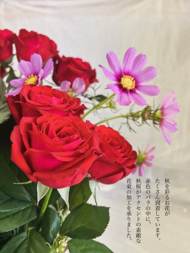 赤バラと秋桜が素敵な思い出のブーケを【押し花メゾ】にて保存させていただきました💐
