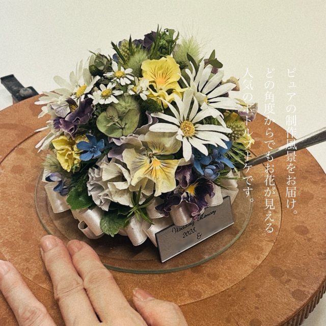 本日はボトルブーケシリーズ【ピュア】の制作風景をお届けします。