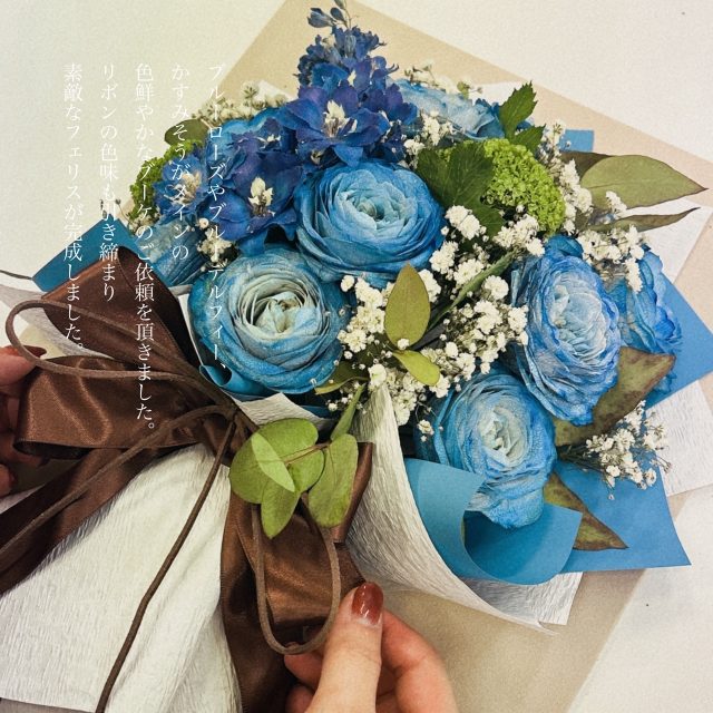 色鮮やかなブルーのブーケの加工をさせていただきました🪻