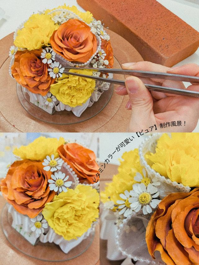 制作事例のご紹介ボトルブーケ【ピュア】の制作風景のご紹介🍊
