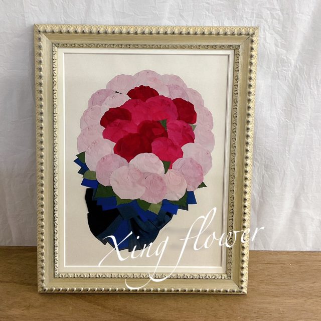 最近はプロポーズの108本のバラの花束を残す特注額での制作依頼も増えております。