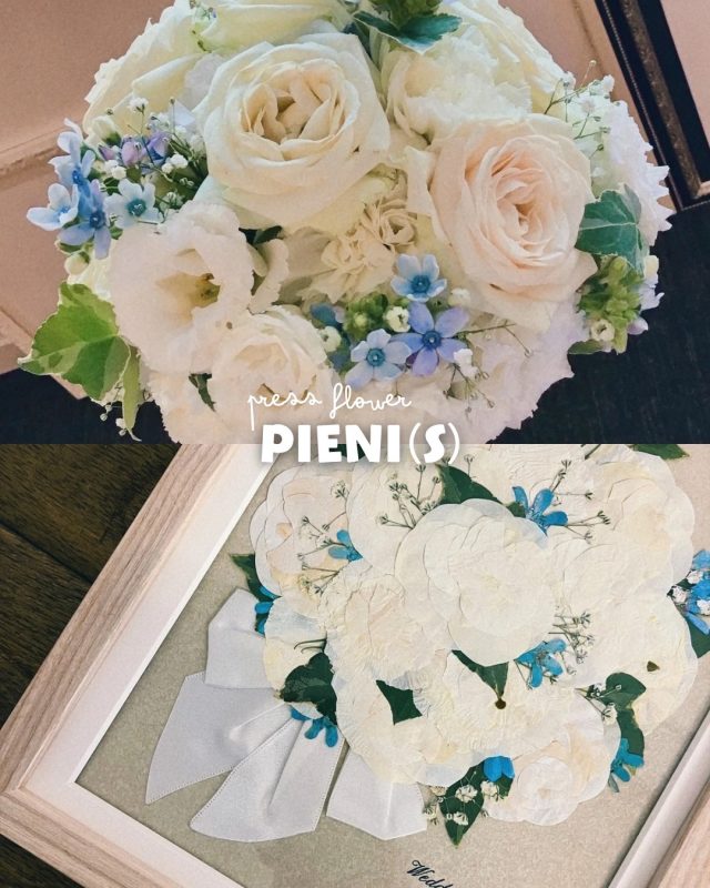 元のブーケの雰囲気を残して押し花アート商品【ピエニ】にて保存させていただきました♫