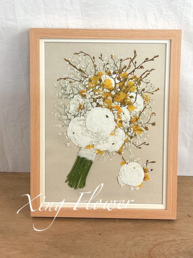 - 押し花アート : 押し花を花束型や好みのレイアウトにアレンジして額に入れた、絵画のようなアイテム