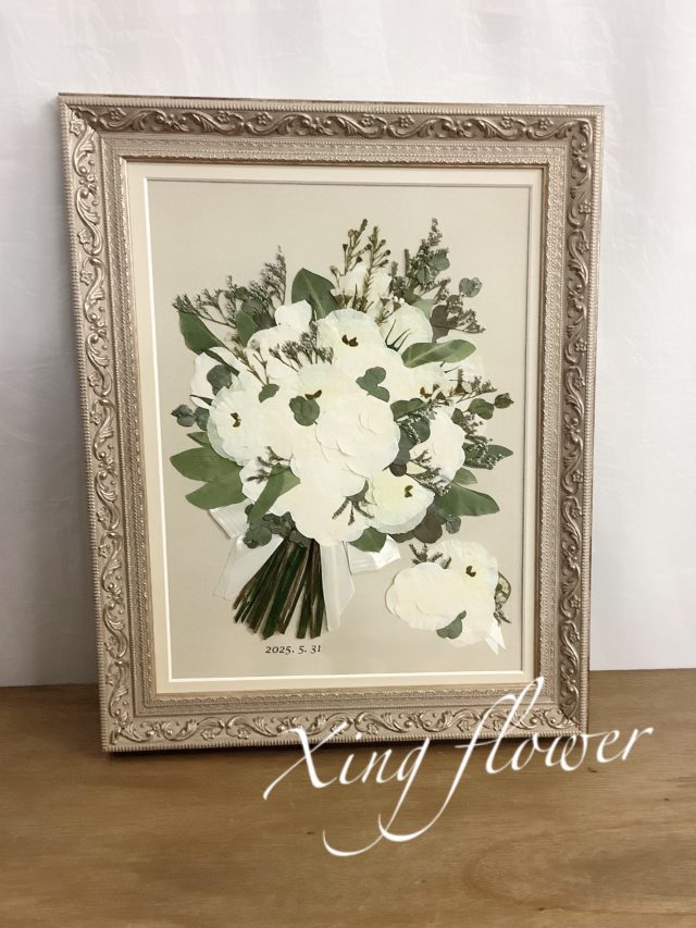 - 押し花アート : 押し花を花束型や好みのレイアウトにアレンジして額に入れた、絵画のようなアイテム