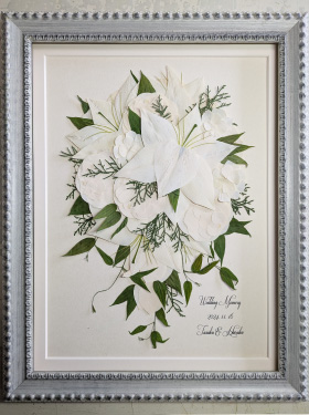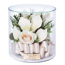 妻の「お花を形に残したい」という希望を叶えるため、プロポーズの花束と結婚式のブーケを依頼しました。日常で目にするたびに妻は当時を思い出して笑顔になっています。大切な思い出が形として残り、この投資は安いと感じました。