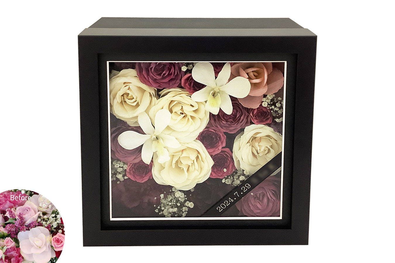 プロポーズの花束や結婚式のブーケなど想い出のお花をアフターブーケとして保存加工いたします。