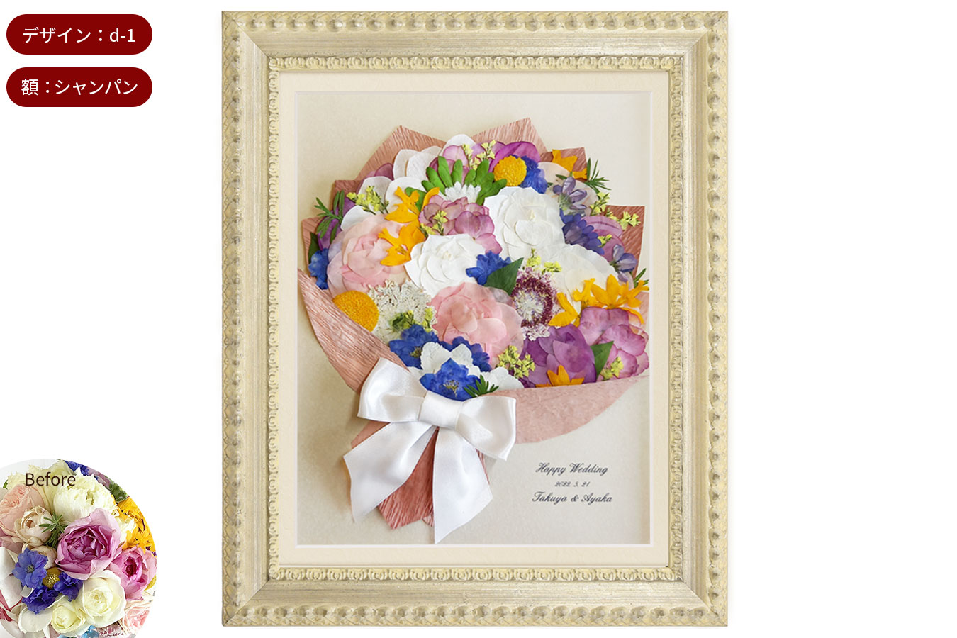 記念のお写真と大切なブーケを一緒に飾れます。