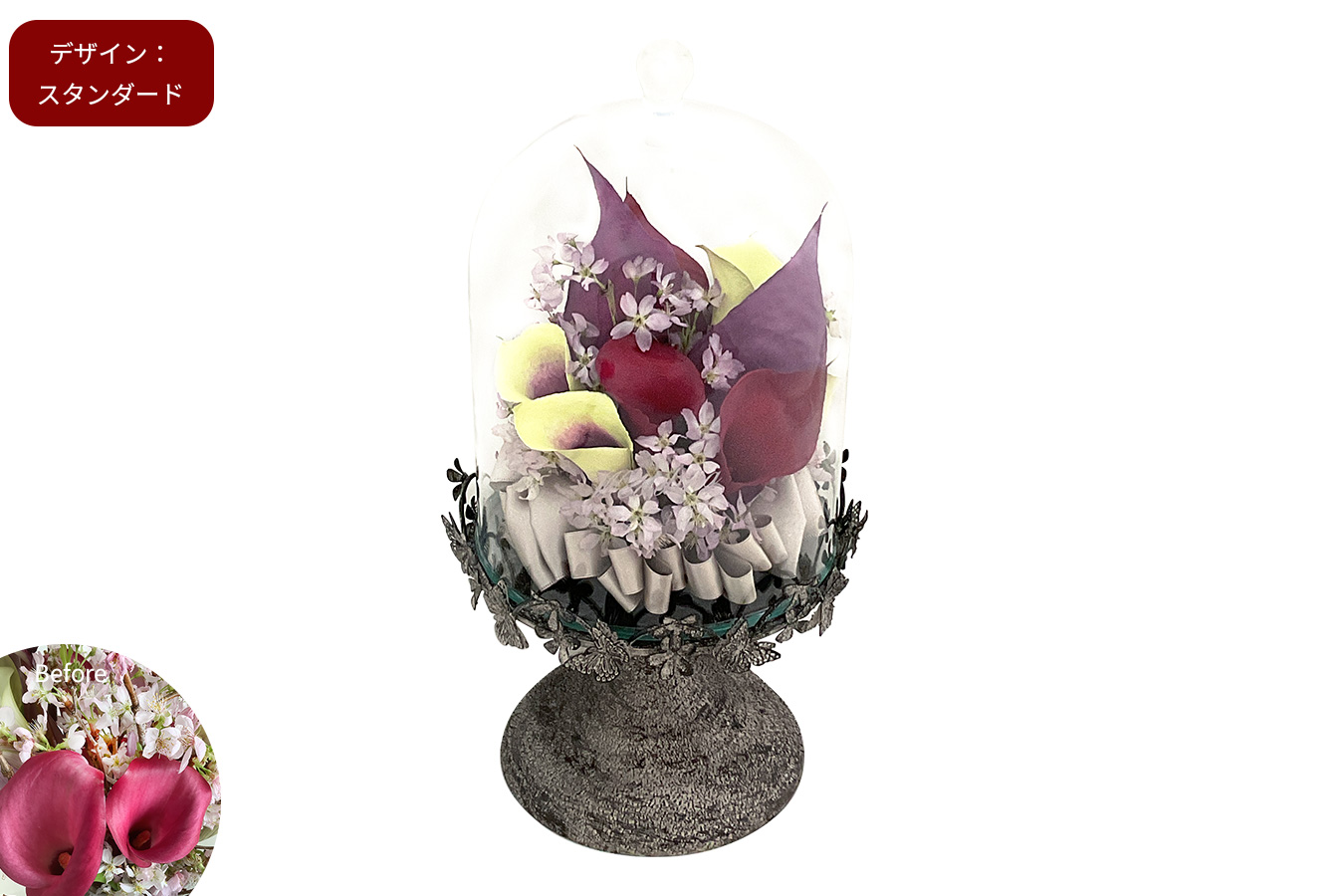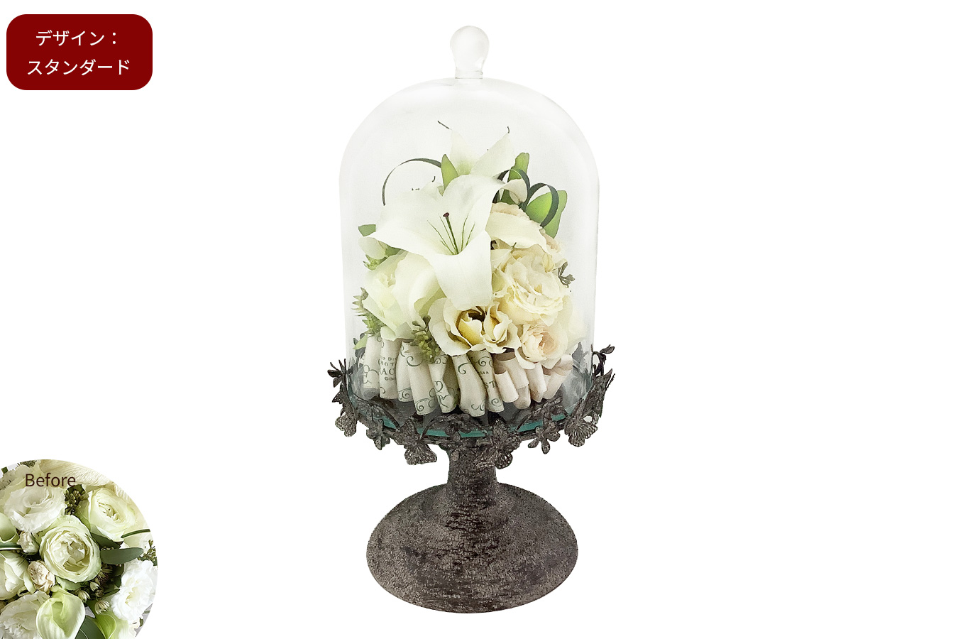 アンティーク調の台座に思い出のお花をのせて