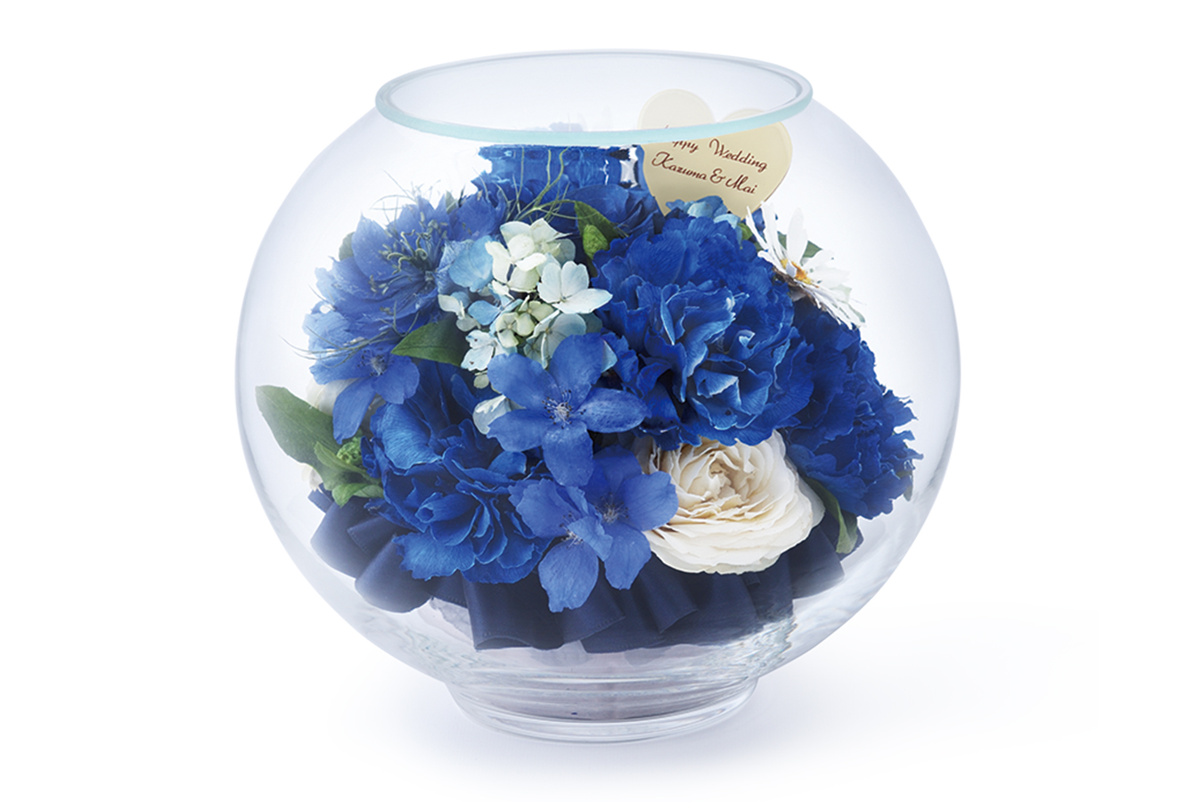 シンプルな丸ガラスを使ったブーケ保存加工の定番商品です。