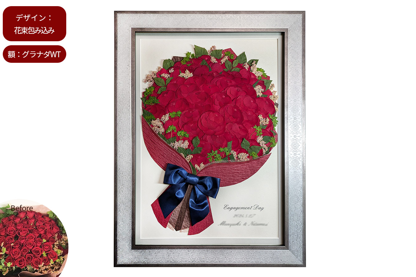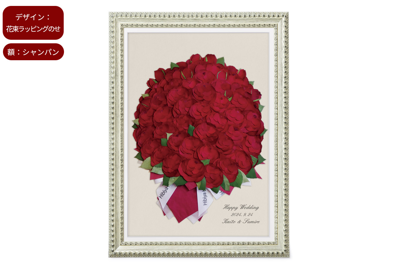 額を縦使いにして、花束風や敷き詰めのデザインも可能です。花束風ですと薔薇で50~60輪までご指定頂けます。