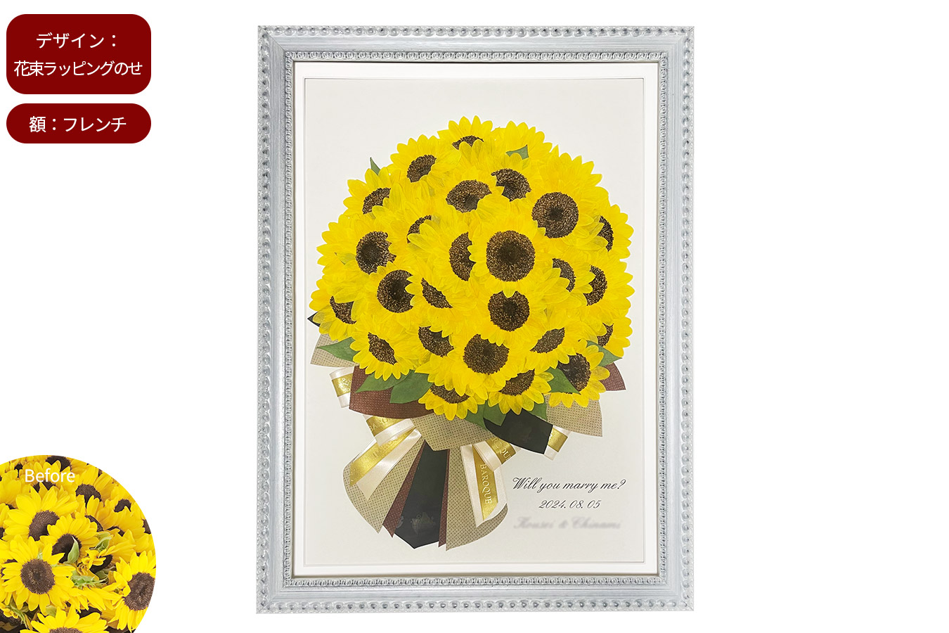※縦向き・花束風のアレンジも承ります。包装紙・リボンはお客様の花束に付属の物を使用致します。